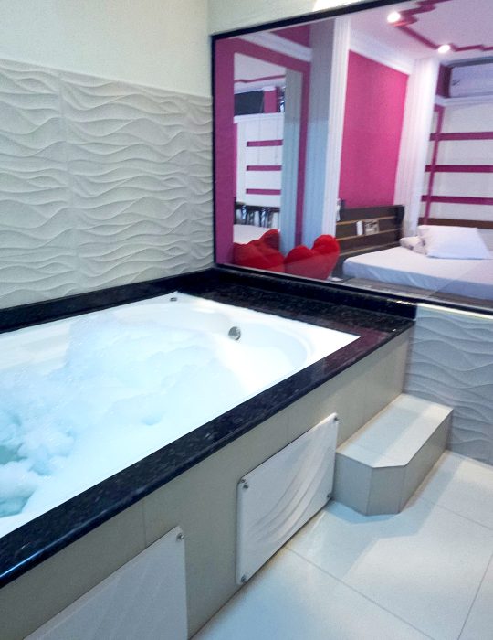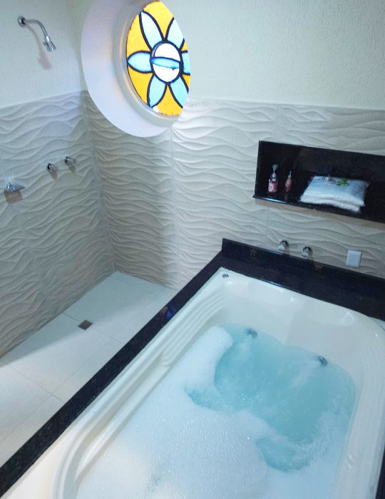 Desfrute de uma experiência inesquecível em nossa Suíte com hidromassagem privativa. Ideal para momentos a dois ou para um descanso revigorante.